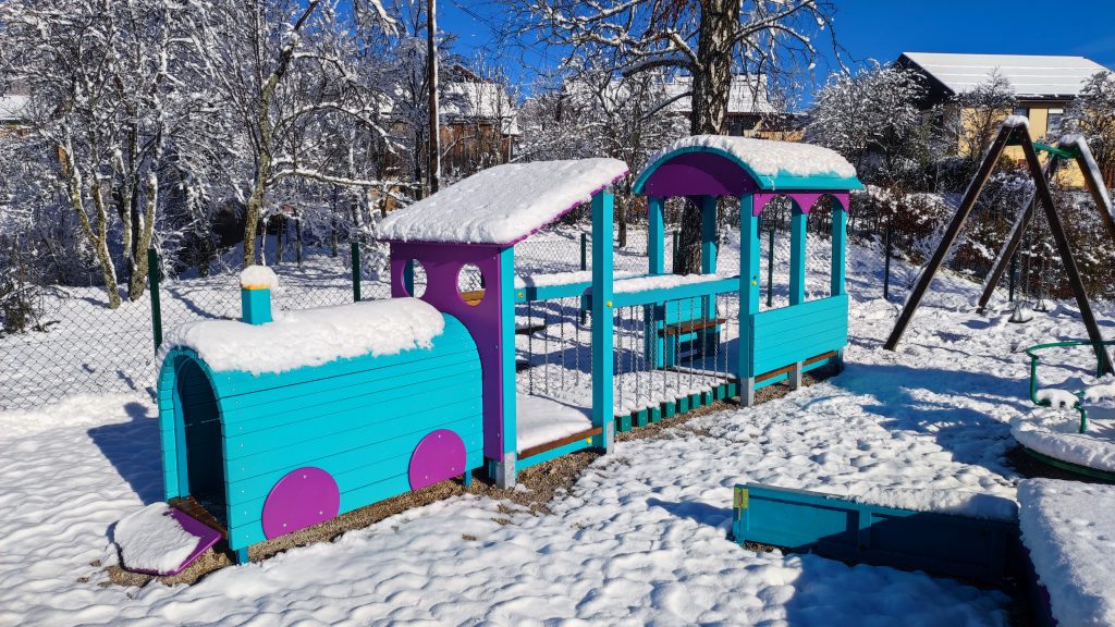 Na već postojeća igrala i opremu, dodana su još dva igrala; vlakić Ćiro i pješčanik, visinomjer gljiva te dovršena započeta ograda oko parka. Veseli nas da će naši vrtićarci i ostala djeca provesti više vremena na otvorenom koristeći zanimljiva igrala.