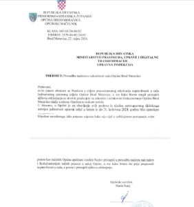 Obavještavamo stanovnike Općine Brod Moravice i šire, da smo s ciljem osiguranja zakonitosti i transparentnosti poslovanja te učestalih lažnih prijava koje imaju za cilj širenje neistina, uzaludno trošenje resursa i klevetu tijela Općine, samoinicijativno zatražili nadzor od nadležnih tijela izvršne vlasti: Ministarstva financija, Ministarstva pravosuđa i uprave te Državnog ureda za reviziju.